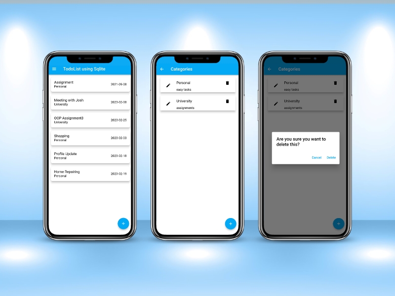 Database Management: The app incorporated a local SQLite database to ensure that users' data was saved locally on their devices. This feature enabled users to access their tasks even when they were offline. The database management feature also enabled users to back up their data and restore it if necessary.